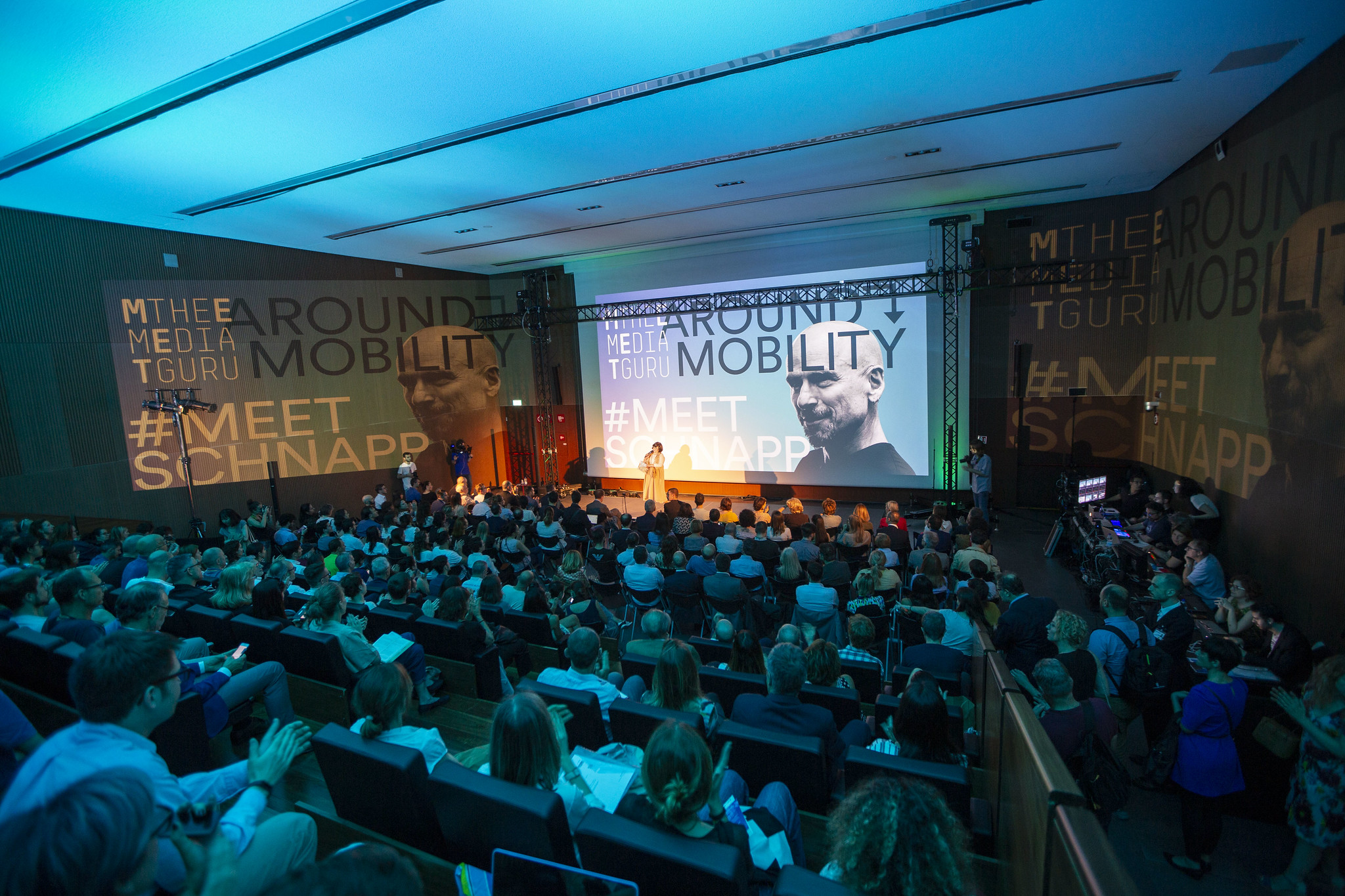 But the final solution answers additional challenges. Firstly, the need to be easily integrated into the current visual identity, characterized by the dynamic use of Futura, paired with an extended use of gradients of blue. Normally a common rule would be to avoid the use of the same font in the logo and body-copy; here Futura LT is present in both, but in the logotype, it is also subtly tweaked and customized, and this seems to be more than enough to ensure both coherence and originality to the typographic part.